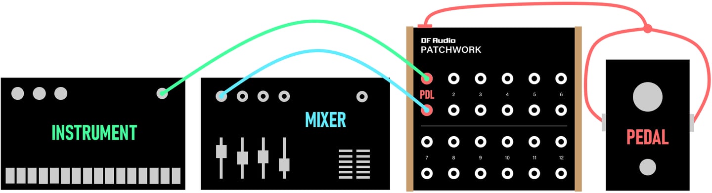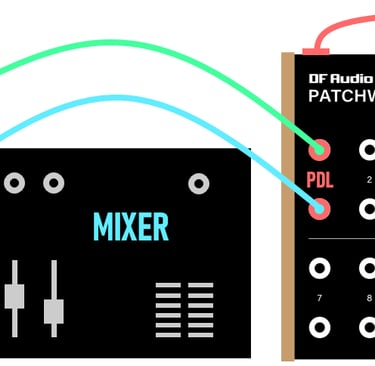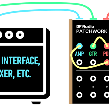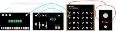 DIRECT PATCHING: If you have a mixer with 3.5 mm inputs (e.g. Cre8Audio Assembler), simply unplug an instrument from the mixer, patch straight into the PATCHWORK, and then into the input on the mixer. This is probably the most streamlined way to use a patch bay, with significantly less cabling required.