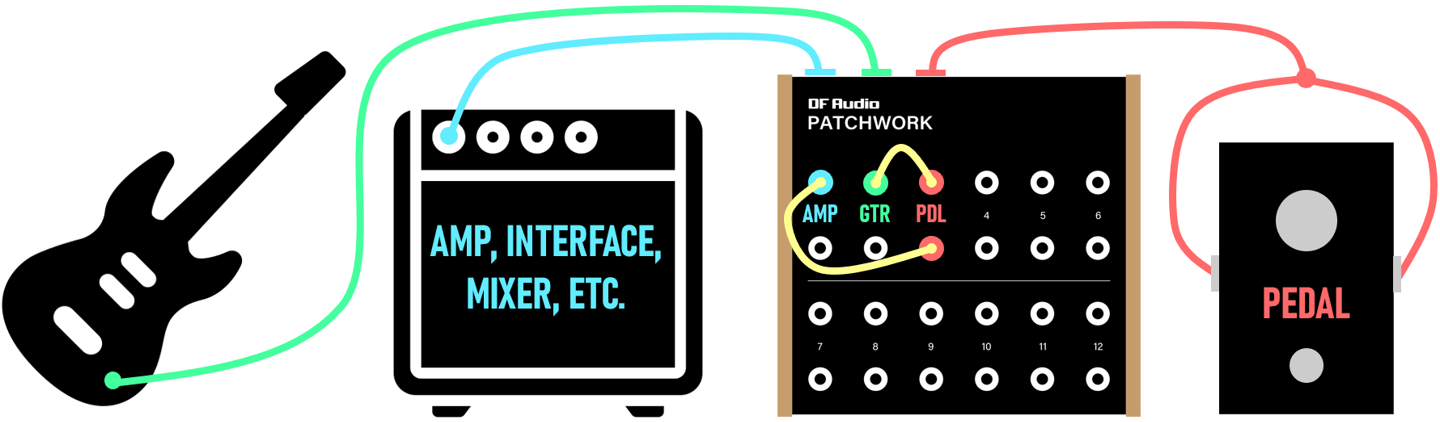 PATCHWORK is a simple yet versatile patch bay, ideal for pedal boards and desktop spaces alike.