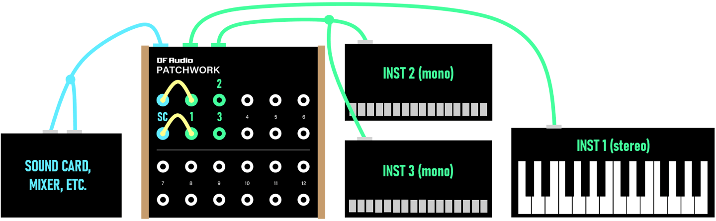 TOO MANY SYNTHS: If you find yourself with more instruments than inputs on your mixer or interface, PATCHWORK is a great way to have everything hooked up - just patch it in when required.
