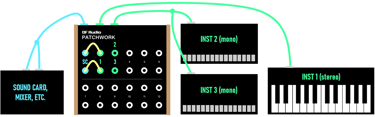 PATCHWORK can also be used to connect to instruments, interfaces, mixers, amplifiers, etc.