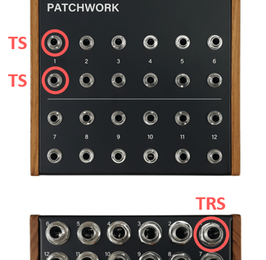 TRS (tip-ring-sleeve) sockets can carry two separate signals. PATCHWORK breaks these signals out into two separate TS sockets on the top panel.